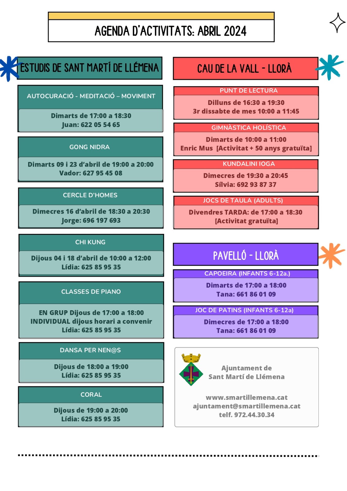 Actualitat, Agenda, Notícies ACTIVITATS ABRIL 2024 ACTIVITATS d'Abril 2024 | Sant Martí de Llémena < Entrada AnteriorEntrada Posterior >