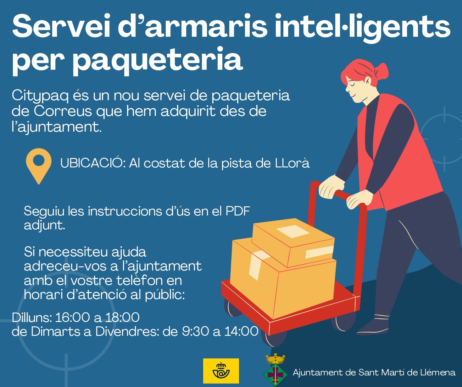 Actualitat, Agenda, Notícies CITYPAQ – SERVEI PAQUETERIA DE CORREUS Al costat de la pista del pavelló de Llorà - Als vestidors En el següent enllaç trobareu pas a pas les instruccions per fer servir el Citypaq: Instruccions Citypaq (1) < Entrada AnteriorEntrada Posterior >