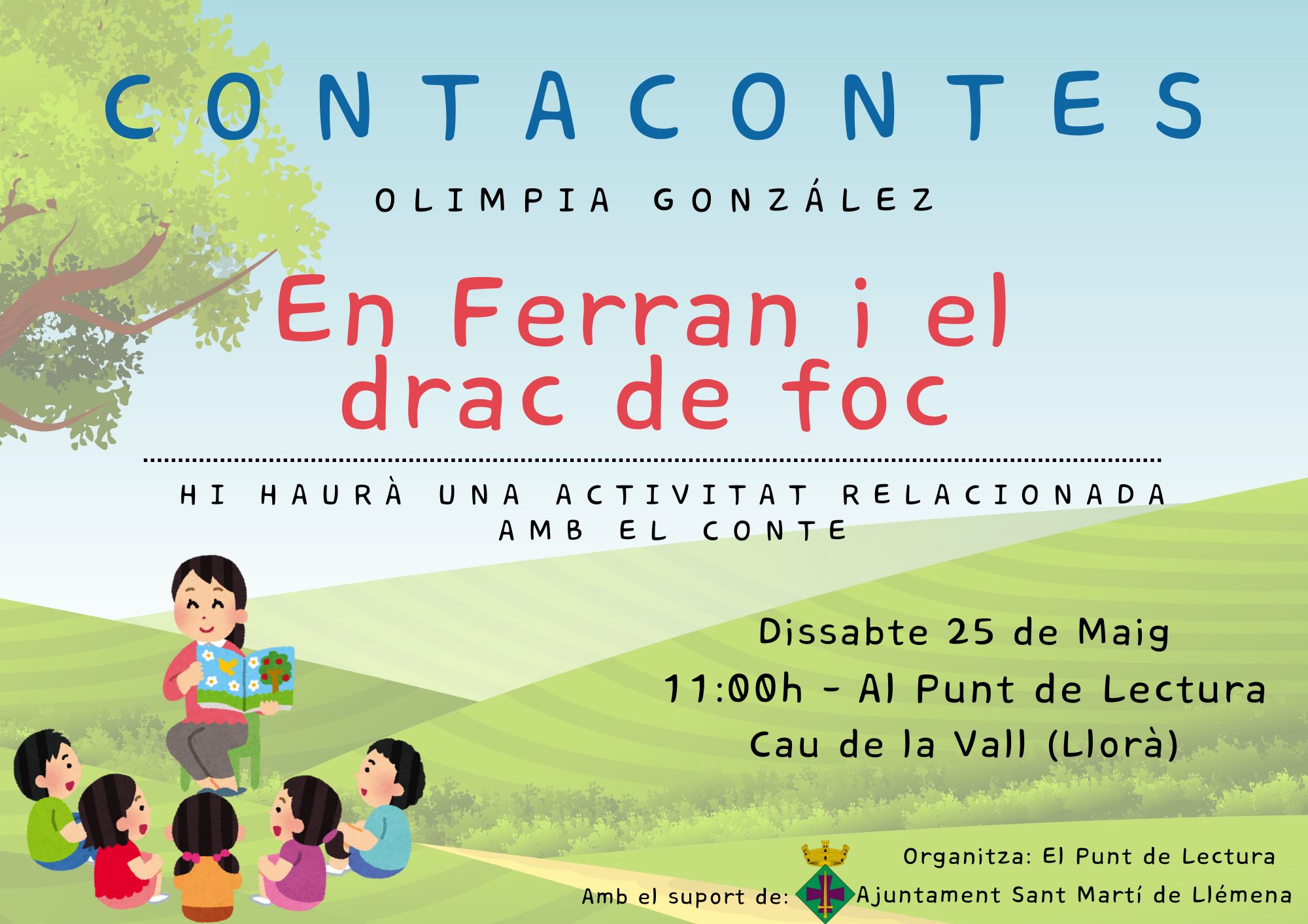 Aquest dissabte 25 de maig a les 11h al Punt de Lectura (Cau de la Vall) hi haurà el Contacontes: EN FERRAN I EL DRAC DE FOC, amb una activitat plàstica relacionada amb el conte.