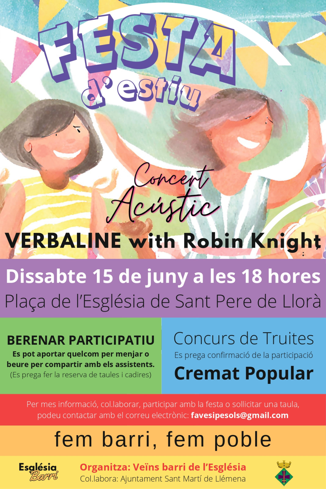 Actualitat, Agenda, Notícies FESTA D’ESTIU: CONCERT ACÚSTIC Dissabte 15 de Juny a les 18h | Plaça de l'Església de Llorà < Entrada AnteriorEntrada Posterior >