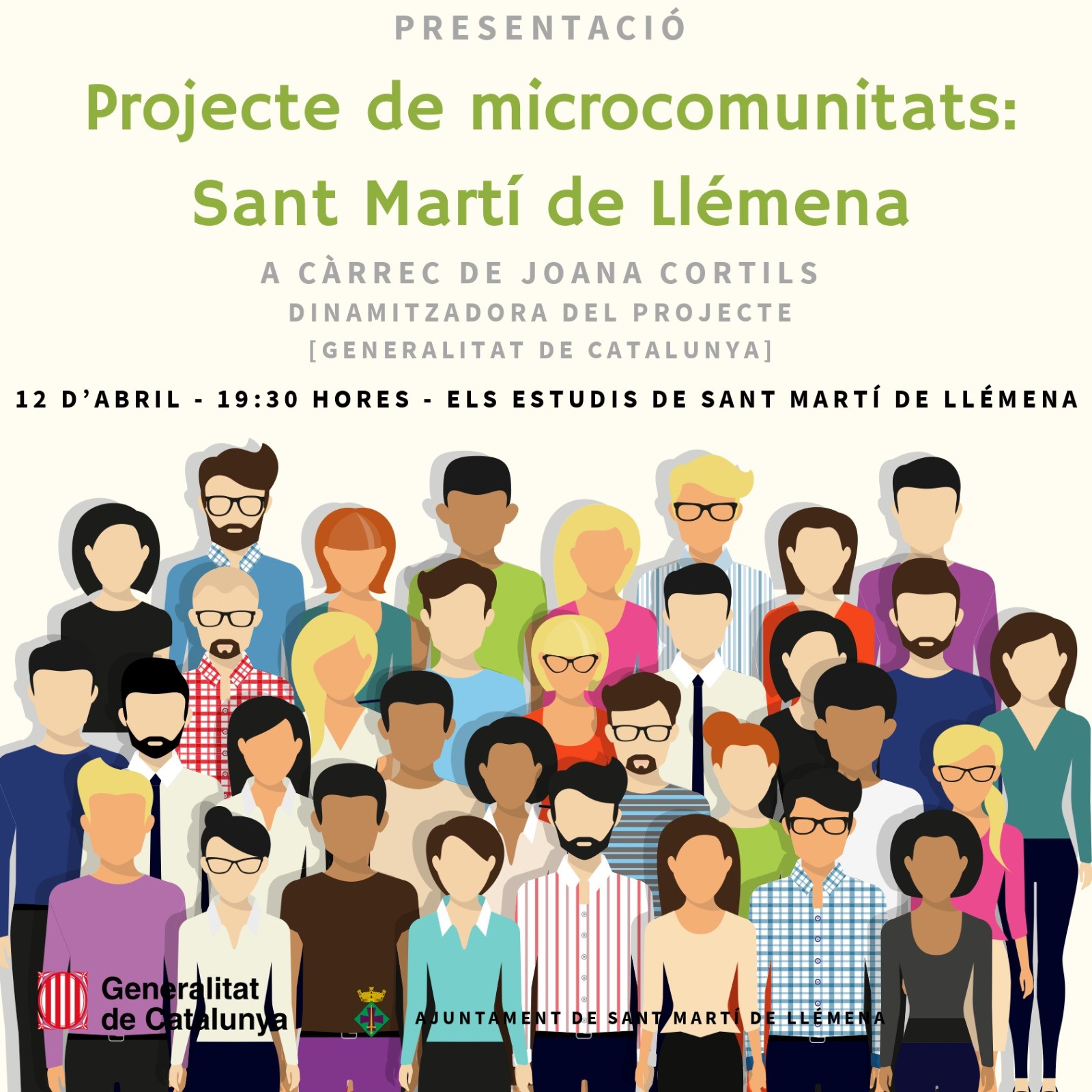 Actualitat, Agenda, Notícies PROJECTE MICROCOMUNITATS: Sant Martí de Llémena Divendres 12 d'abril a les 19:30h als Estudis de Sant Martí de Llémena A càrrec de Joana Cortils, dinamitzadora del projecte. [Generalitat de Catalunya] < Entrada AnteriorEntrada Posterior >