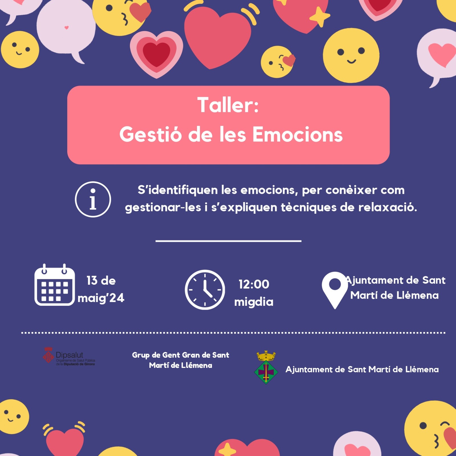 Actualitat, Agenda, Notícies TALLER: GESTIÓ D’EMOCIONS Dilluns 13 de Maig a les 12h | Ajuntament Sant Martí de Llémena S’identifiquen les emocions, per conéixer com gestionar-les s’expliquen tècniques de relaxació. < Entrada AnteriorEntrada Posterior >